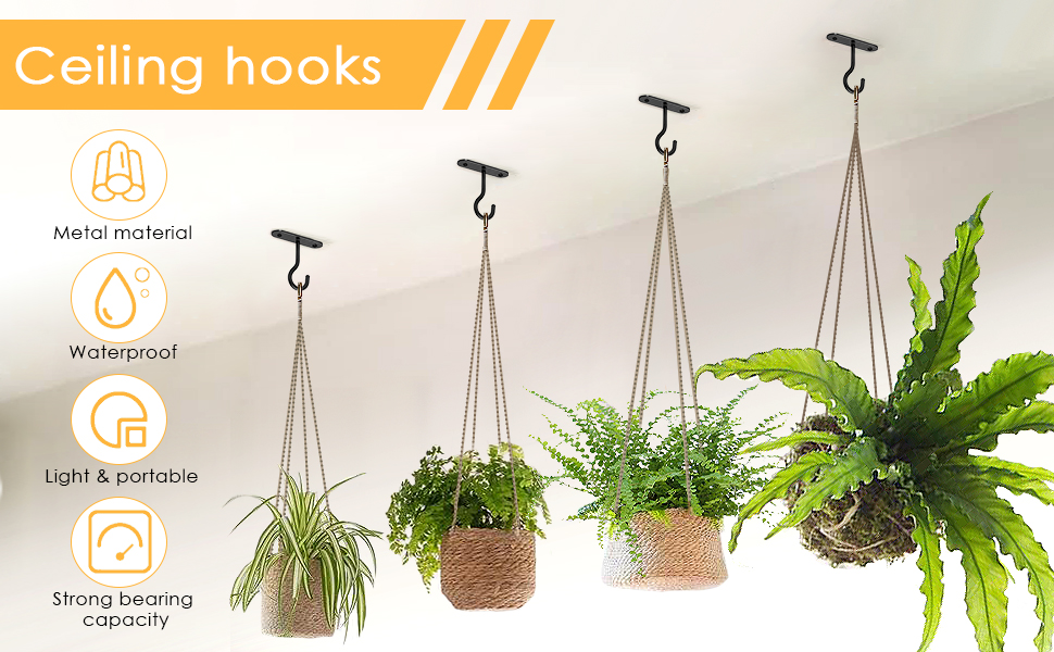 . Ceiling Hooks for Hanging Plants 2Pack 2.5in,Wall Mount Hangers Plant Hooks,Wall Hooks for Plants,Lights,Planters,Lanterns,Hanging Bird Feeders,Wind Chimes,indoor&Outdoor Decoration Hooks Black 4.7 out of 5 stars 1,392 Ceiling Hooks for Hanging Plants 2Pack 2.5in,Wall Mount Hangers Plant Hooks,Wall Hooks for Plants,Lights,Planters,Lanterns,Hanging Bird Feeders,Wind Chimes,indoor&Outdoor Decoration Hooks Black